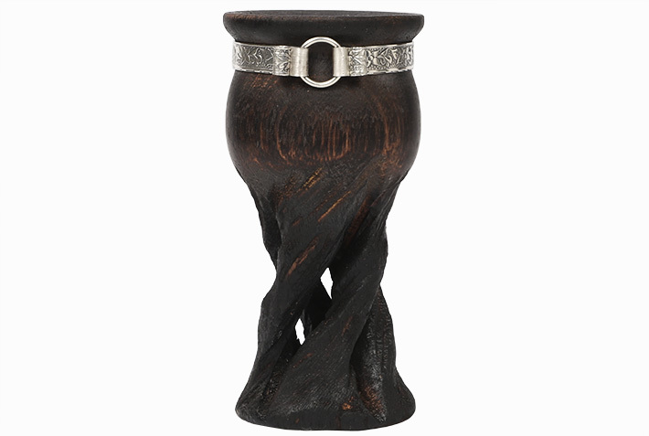 Argentyńskie, majestatyczne naczynie z opalanego drewna algarrobo ozdobione alpaką.