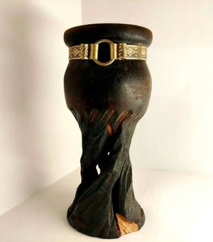 Obniżka ze względu na odłamany kawałek drewna w dolnej części naczynia (widoczne na zdjęciach). Uszkodzenie nie wpływa na stabilność, defekt jest tylko estetyczny.