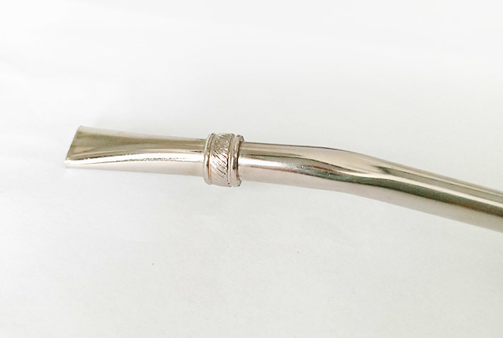 Elegancko prezentująca się bombilla z podwójnym systemem filtracji i pierścieniem chłodzącym. Bardzo dobrze radzi sobie nawet z drobniejszymi yerbami. Wykonana z brązu niklowanego.