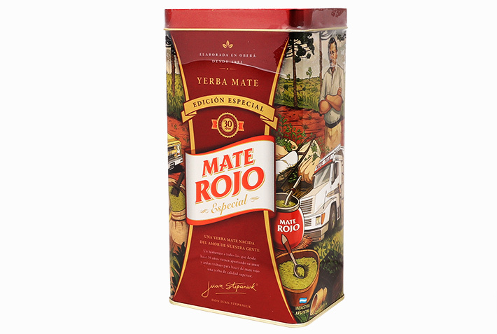 Ozdobna, ilustrowana puszka ze specjalnym dozownikiem. W środku znajduje się paczka 500 g klasycznej yerby Mate Rojo Especial.