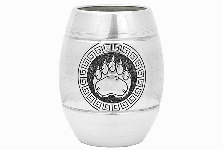 Unikatowe naczynie dla prawdziwego konesera yerbowego. Wykonane z pachnącego drewna Palo Santo z Paragwaju. Zdobienia wykonano ręcznie w polskiej pracowni. Charakterystyczny grawer przedstawia odcisk niedźwiedziej łapy otoczony geometryczną ramą w greckim stylu. Grawer wykonano z dużą precyzją — wyraźne kontury pazurów nadają naczynku mocny, dziki charakter.