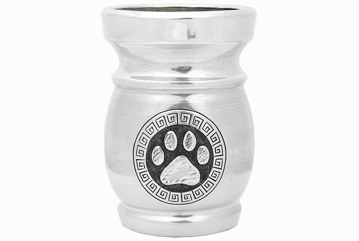 Centralnym elementem graweru jest motyw psiej łapy, otoczony geometryczną ramą. Łapa została wypełniona delikatnym kreskowaniem, a tło wokół niej precyzyjnym kropkowaniem, co nadaje całości głębię i trójwymiarowy efekt. Geometryczna oprawa tworzy efektowny kontrast z organicznym kształtem łapy.
