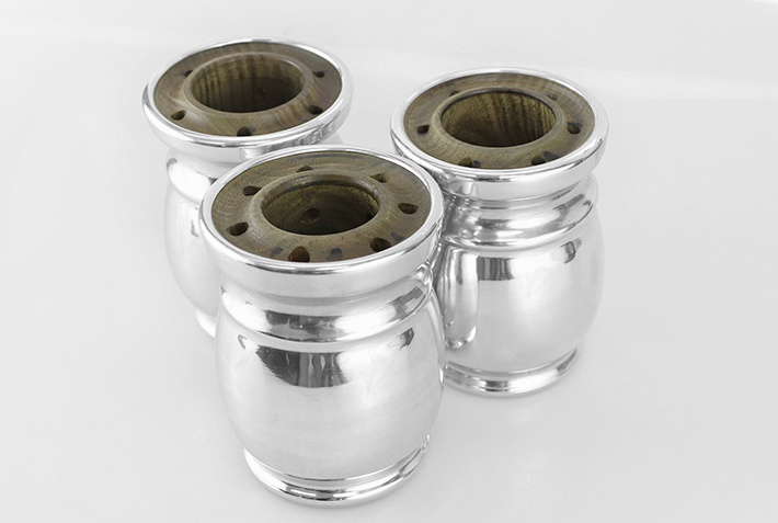Piękne naczynie o grubych ściankach i pojemności ok. 100-120 ml z paragwajskiego drewna Palo Santo (Bulnesia sarmientoi) z aluminiowym okuciem.