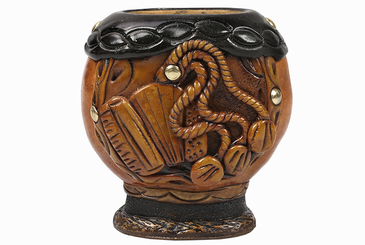 Wyjątkowe naczynie z naturalnej tykwy wykonane w brazylijskiej fabryce Bortonaggio, producenta wysokiej klasy yerbowych akcesoriów.