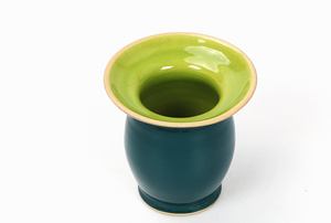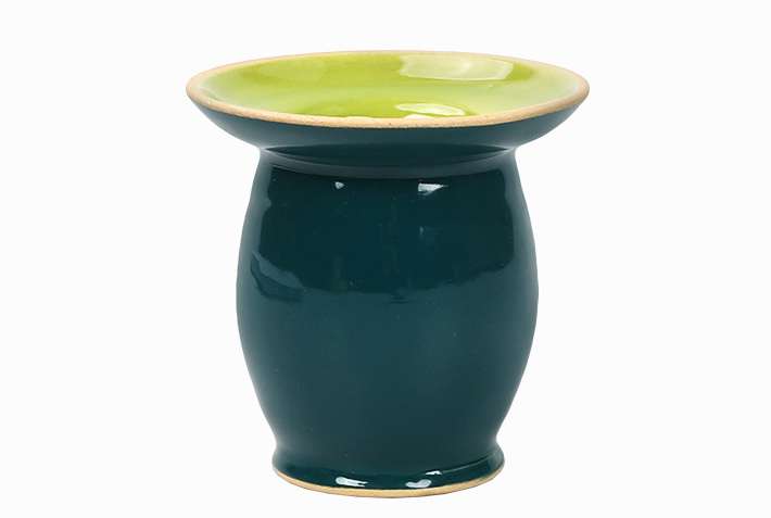 Ceramiczne, gliniane naczynko w kolorze głębokiej, morskiej zieleni z soczyście zielonym wnętrzem.