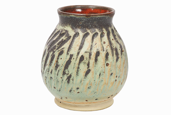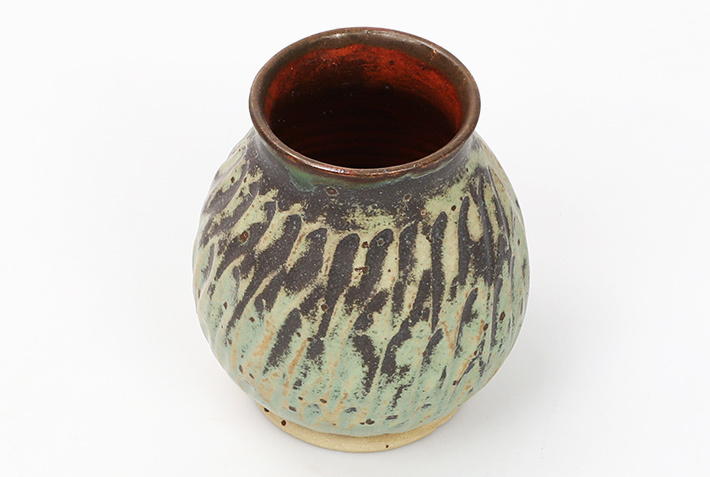 Naczynie z zewnątrz posiada satynową w dotyku powierzchnię i delikatną fakturę. Powierzchnia naczynia ma kolor szałwiowy przeplatający się z grafitem. Wnętrze jest całe szkliwione na kolor ceglasty.