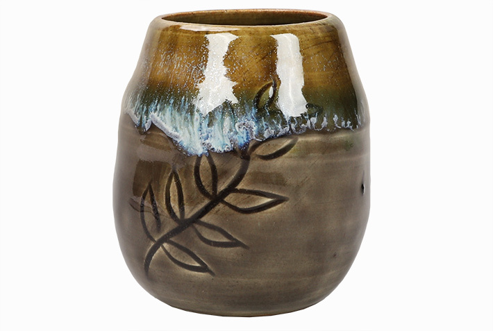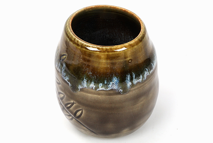 Naczynko do Yerba Mate w orzechowo-beżowej barwie. Stonowane, a jednocześnie zjawiskowo niepowtarzalne. Uroku dodają 2 gałązki wyżłobione na powierzchni naczynia. Powierzchnia jest gładka i lśniąca, z subtelnymi nieregularnościami typowymi dla ręcznie robionych przedmiotów.