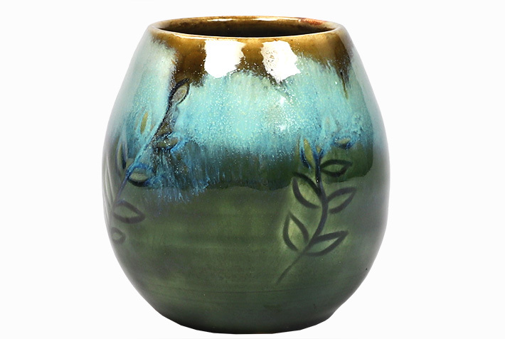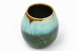 Kolorystyka tego naczynka jest podzielona na dwie główne strefy. Dolna połowa naczynia posiada głęboki, zielony kolor. Górna część prezentuje odcienie przejrzystego, słonecznego nieba. Uroku dodają cztery gałązki rozmieszczone symetrycznie na obwodzie naczynia. Całość desugny kojarzy się z lasem lub głębokim jeziorem.