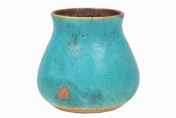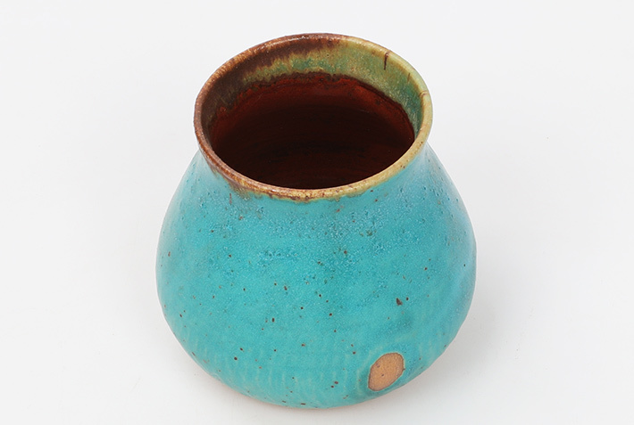 Naczynie o gładkiej, satynowej powierzchni, wyróżniające się nasyceniem koloru. Soczysta barwa lazuru delikatnie kontrastuje z intensywnie ceglastym wnętrzem.