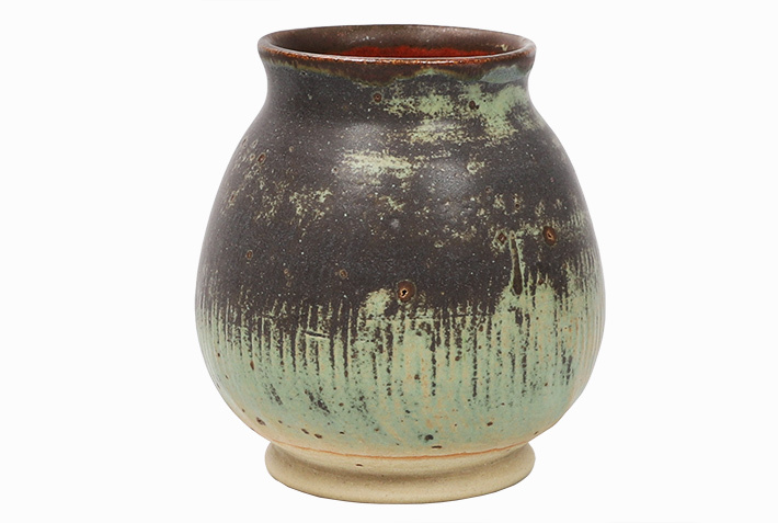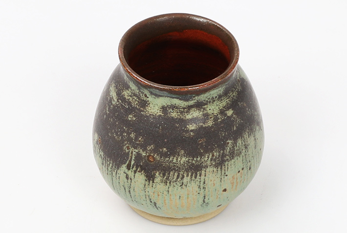 Naczynie z zewnątrz posiada satynową w dotyku, gładką powierzchnię. Naczynie z zewnątrz ma kolor szałwiowy przeplatający się z grafitem. Wnętrze jest całe szkliwione na kolor ceglasty.