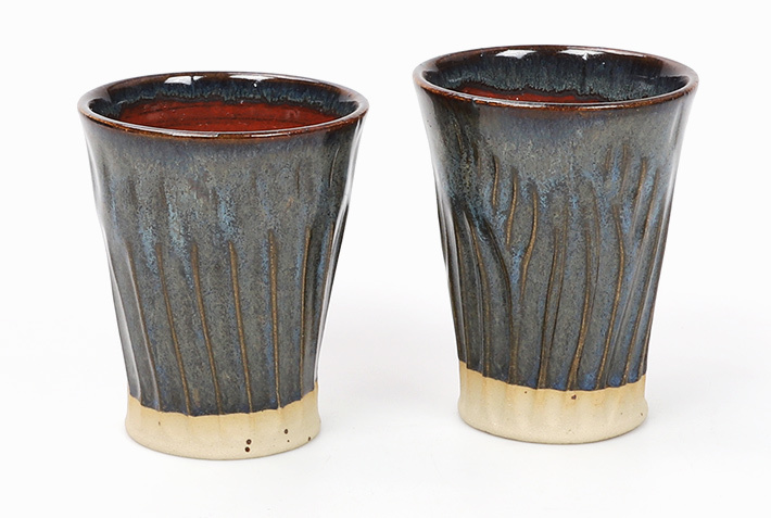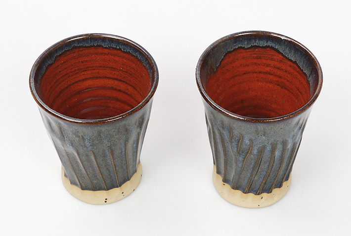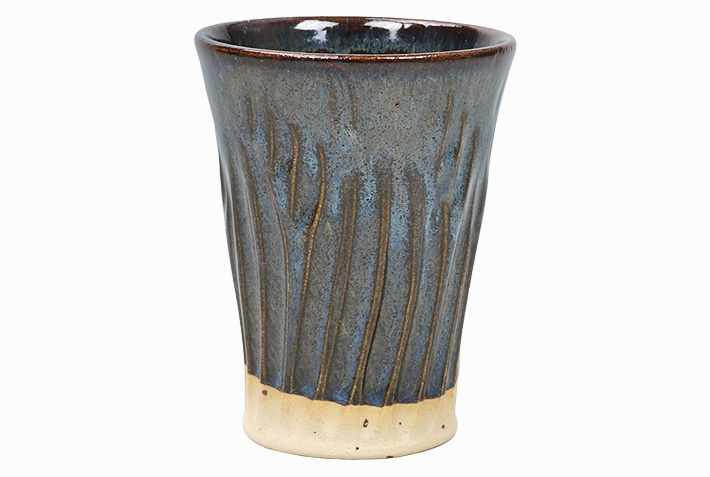 Naczynie z zewnątrz jest szkliwione na gładko z delikatną fakturą fal. Powierzchnia naczynia ma kolor zbliżony do jeansu. Wnętrze posiada soczysty, ceglasty kolor.