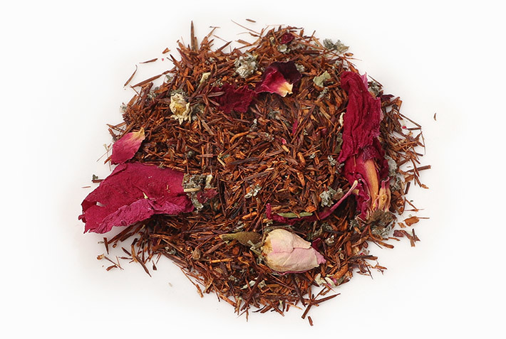 Mieszanka afrykańskiego, słodkiego czerwonokrzewu z aromatycznymi dodatkami; smakuje pysznymi truskawkowymi lodami.