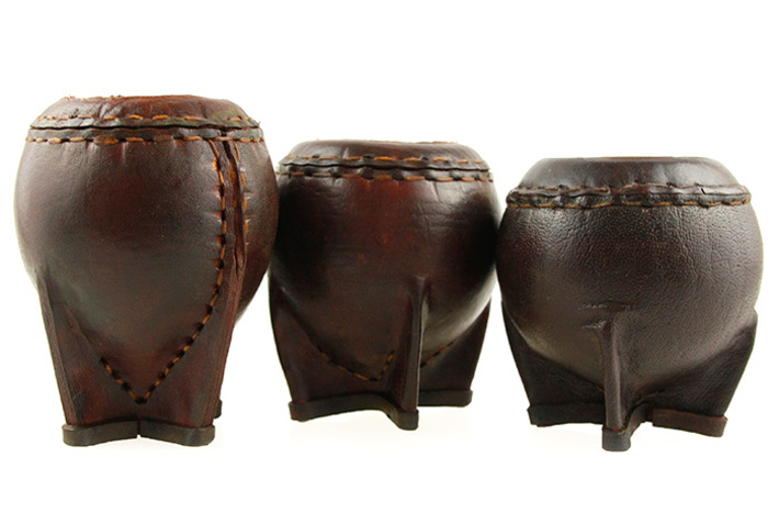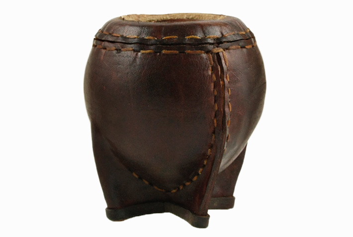 Urugwajska tykwa obita w skórę, o kolorze ciemny brąz i bardzo grubych ściankach. Również stojaczek zapewniający stabilność wykonany jest ze sztywnej skóry. Ładnie wykonane, bardzo dobrze trzyma się w dłoni. Ta tykwa nie wymaga przeprowadzania curado. Wystarczy ją opłukać przed pierwszym użyciem.