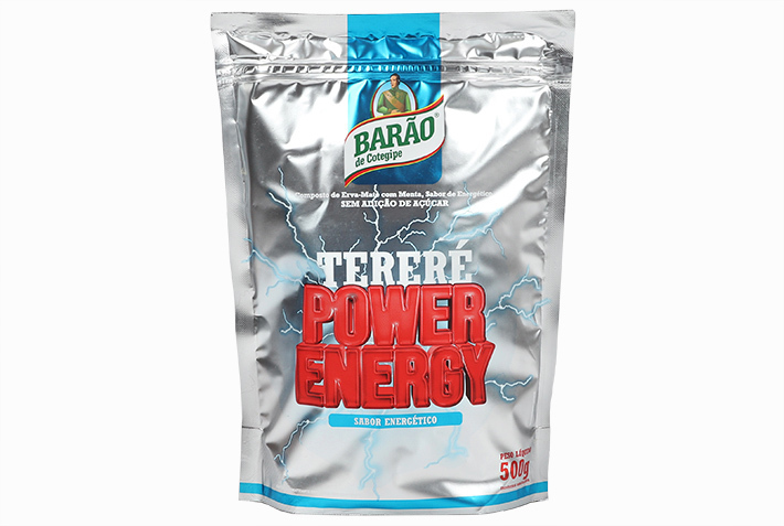 Barão Tereré POWER ENERGY to grubocięta, mało pylasta erva mate o intensywnym smaku dodatków: liści mięty oraz aromatu energy drink.Jest to doskonałą pozycja dla dla fanów smaku napojów energetycznych, którzy chcą zmniejszyć ilości spożywanej kofeiny. Delikatna, przyjemna z charakterystycznymi nutami dodającymi skrzydeł, a także z odświeżającą miętą.